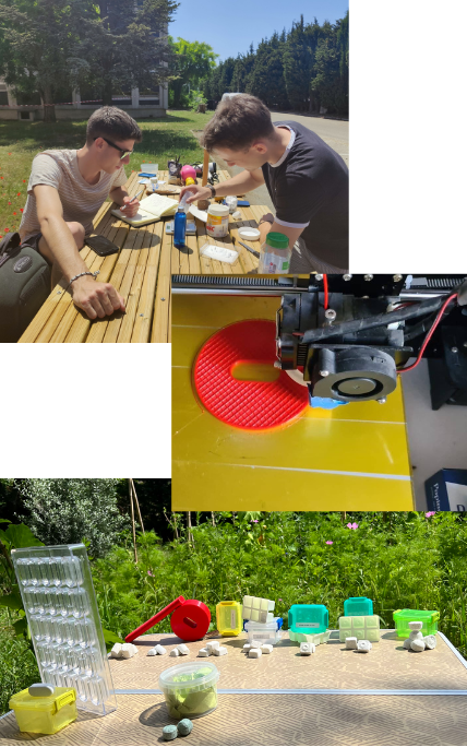 Ça, c'est nos premières recherches, tests et prototypes dans nos jardins ou à la pause entre deux cours. 😁